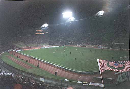 Nachdem man die ca. 180 km von Aalen hinter sich gebracht hat, betritt mandas Olympiastadion gegen 19:30 Uhr. Schon lange nicht mehr einen zahlmäßig hier erlebt, besonders der Gästablock war heute bis unten zum Zaun gefüllt. Der BVB beginnt furios und geht in der 2. Spielminute durch Heiko Herrlich mit 1-0 in Führung. Den Rest des Spiels kann man aus Dortmunder Sicht getrost vergessen. Die Bayern drehen auf und deklassieren ihren Gegner hochverdient. Den meisten Kummer bereitet mir heute die Dortmunder Abwehr, die noch unorganisierter wirkt als im Heimspiel zuvor gegen Lautern. Man darf es ja eigentlich gar nicht sagen, aber vielleicht hat die rote Karte für Heinrich auch etwas gutes an sich, da in der Defensive jetzt umgestellt werden muß. Nach Spielende verzichtet unsere Autobesatzung auf die Huldigung unserer 11 und setzt sich schnell in Richtung Parkplatz in Bewegung. Ingo hingegen fährt mit einem Fanbus zurück nach Dortmund. Schnell verläßt man die Landeshauptstadt Richtung Schweiz.